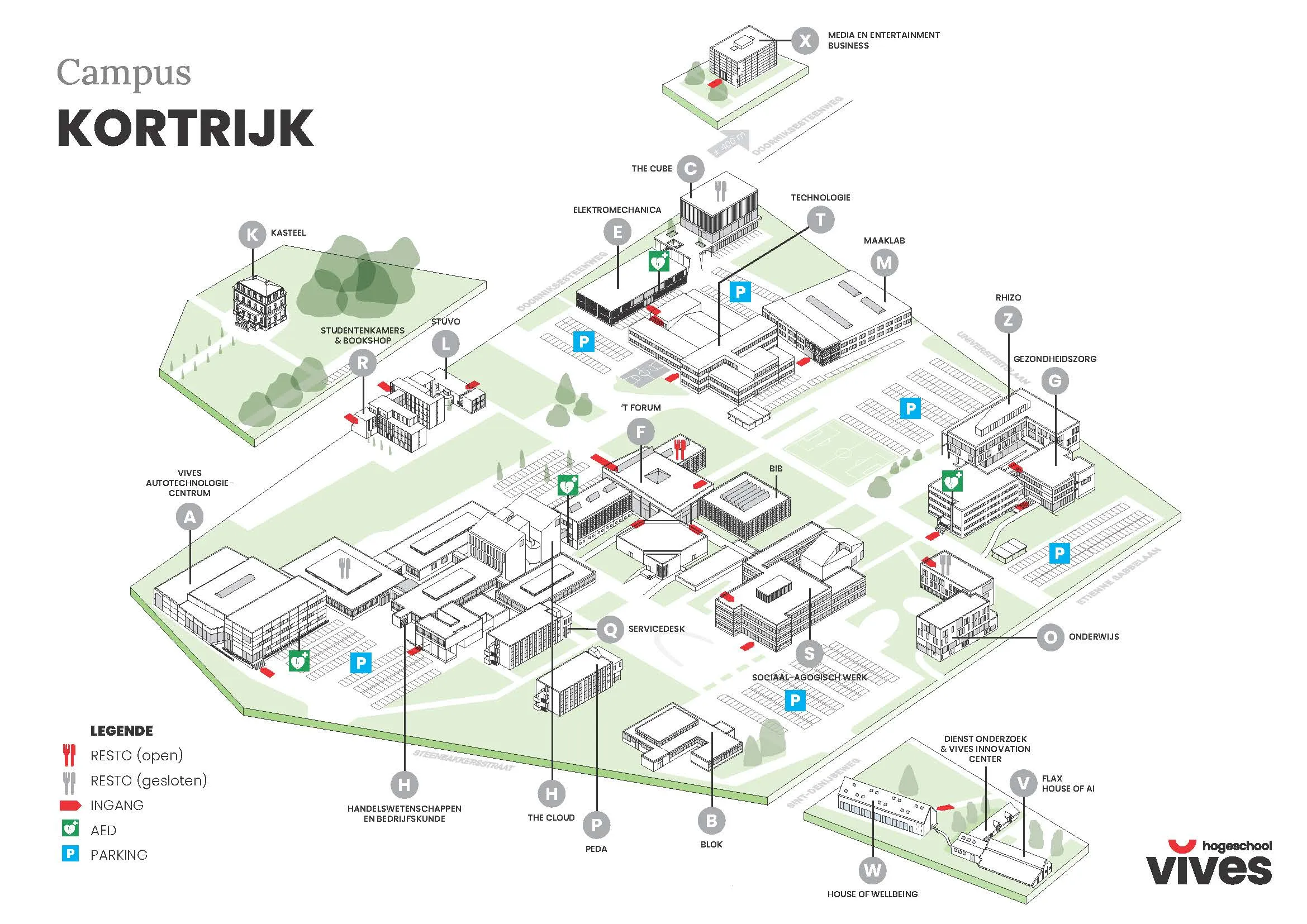 Op onderstaand plannetje kan je de aula ('t Forum gebouw F) terugvinden.